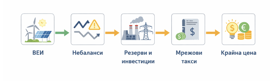 Всички тези допълнителни разходи – както оперативни, така и инвестиционни – в крайна сметка намират отражение в цената на мрежовите услуги. Разходите за резерви, балансиране и инфраструктурни подобрения се признават от регулатора и се включват в таксите за пренос и достъп до мрежата. Те са задължителна част от сметката за електроенергия и се заплащат от всички крайни потребители, независимо дали самите те произвеждат или консумират енергия от ВЕИ.